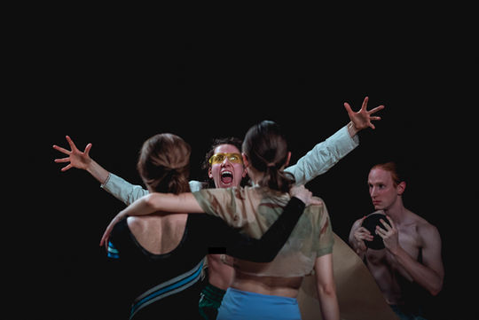 Sticky Fingers Club is an informal artistic collective created by Daniela Komędera, Dominika Wiak, Dominik Więcek and Monika Witkowska. In their artistic work, they move on the borders of theater, choreography and performance. They like to question their own habits, deconstruct theatricality and listen to their collective and individual voices. They are interested in self-irony, work based on playfulness and permission to exaggerate. In the working process they look for inclusiveness and distance. They are interested in body practices and performance in which, thanks to teamwork and mutual support, they can enrich their skills and transcend limitations.